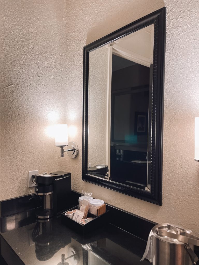 The suite also had 2 separate bathrooms, which was such a nice upgrade. In addition to the bathrooms, there were also mirrors in the rooms that you could use to get ready as well. This room would easily fit several people!